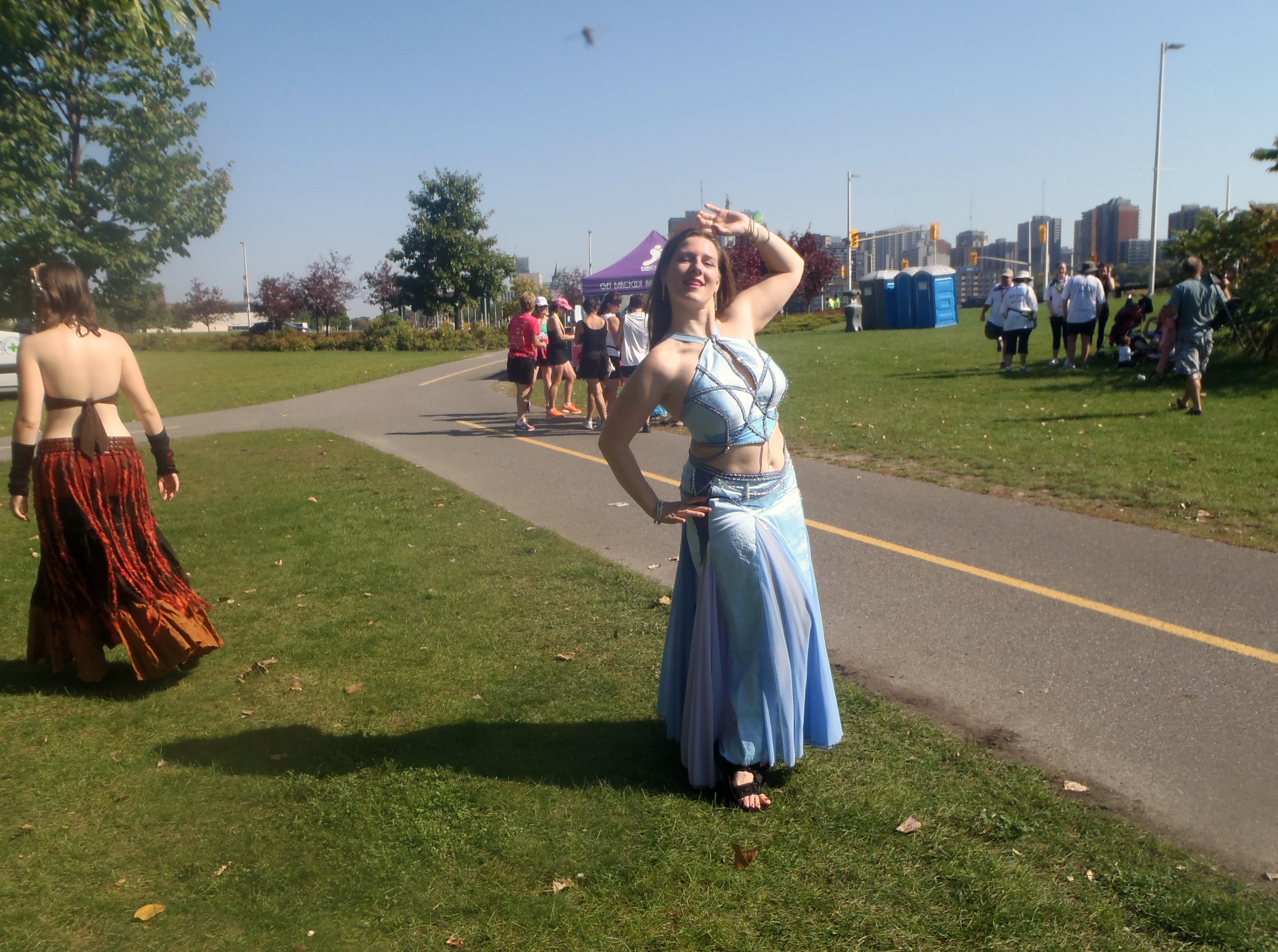 This weekend, I got to join the Belly Dancing For Fun/Bollywood for Fun troupe, to provide a little sparkle and shine while cheering on athletic ladies, gentlemen, and kids, at Emilie’s Run, held at the Aviation Museum. This annual event honours the memory of Olympic hopeful Emilie Mondor.