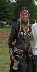JAVANIKA This diminuitive dancer and instructor resides in the countryside, raising chickens, and creating beautiful works of art. With a background in fine arts, her prolific portfolio includes wickedly witty sketches, paintings, unique hand-tooled leather bags and accesories. In her “spare time”, she’s a Medieval re-enactor, formidable archer, and kicks butt with her karate skills. A member of Dr. Kabooms’ Mini Mobile Circus, she entertains children with face-painting, balloon animals, and puppet shows. Last year, this lovely lady was kind enough to hook me up with organizers in her community, so my ‘knight in shining armour’ and I could participate in the Osgoode Medieval Festival. Read more about her at http://willowbird-designs.blogspot.com