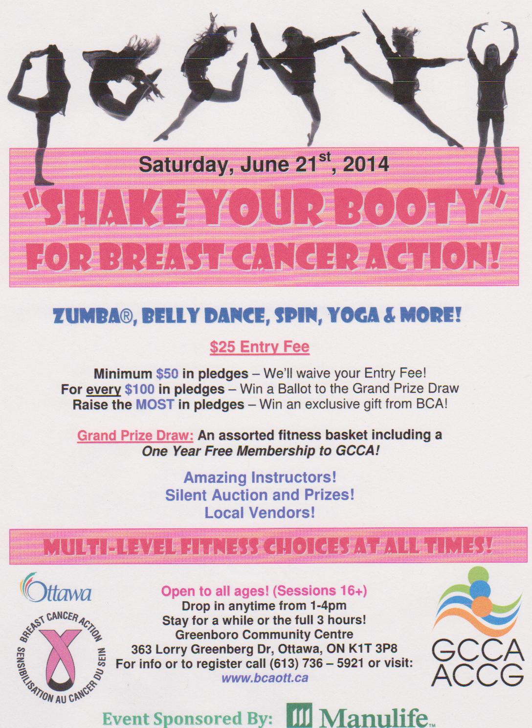 Come on out and shimmy your support for participants at the Breast Cancer Action “Stroll For Our Goal” event, on Saturday, June 1st, 2013, from 10 till noon. It’s being held at a new venue this year – St. Paul University, 223 Main St. (behind the Farmer’s Market). I’ll have my oasis tent set up for diva comfort, with drink cooler and stereo. This is a family-fun event, with kids and dogs welcome; so grab your coin scarf, put on some pink lipstick, and let’s make some noise – because no one should face it alone www.bcaott.ca